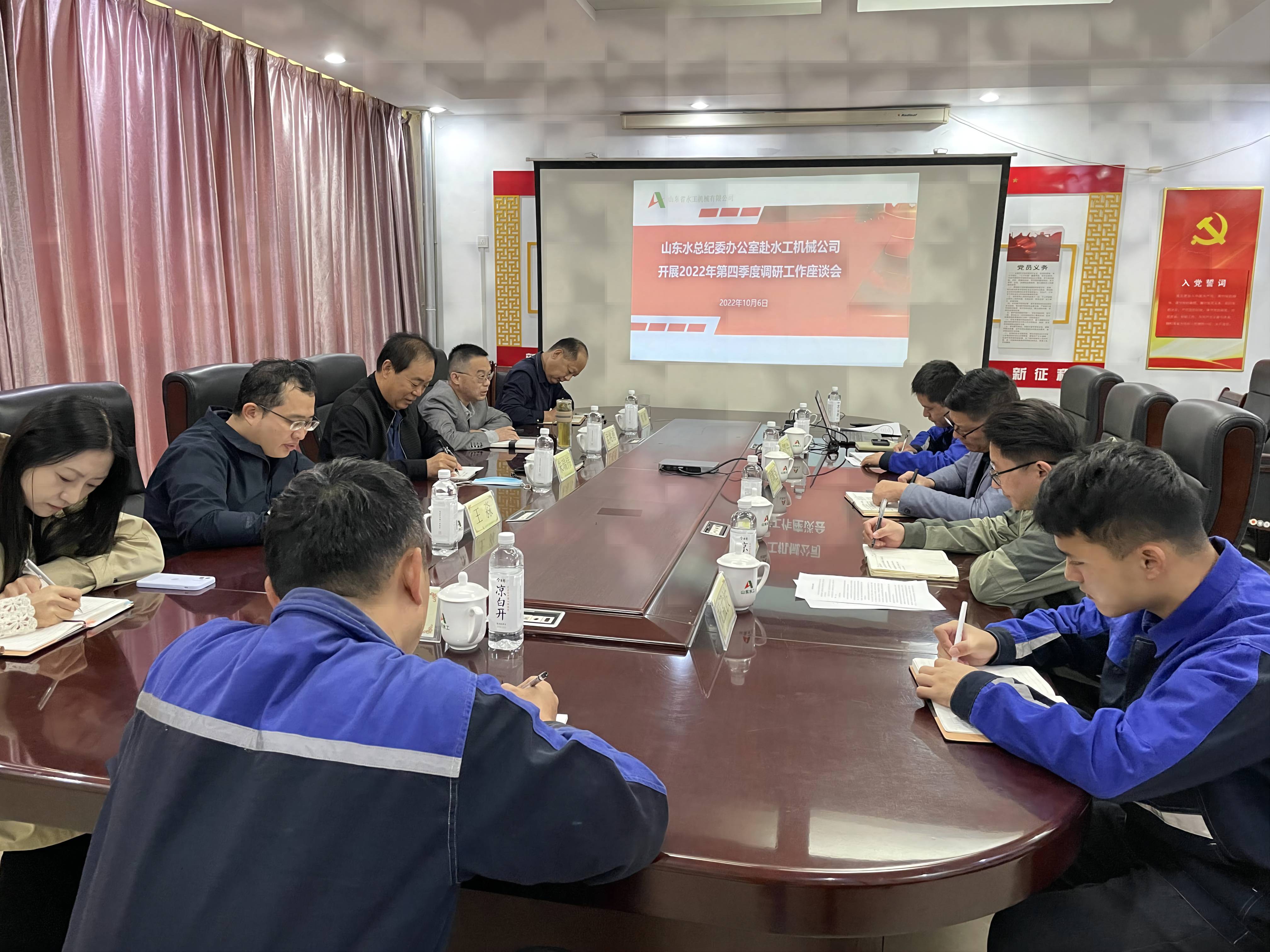 10月5日,調(diào)研組首先在水工機(jī)械公司三樓召開座談會,聽取水工機(jī)械公司機(jī)料采購、廢料處理、成本控制等情況匯報,以及公司在各項工作中遇到的難題及下一步工作措施,對有關(guān)問題給予現(xiàn)場指導(dǎo)。調(diào)研組指出,公司目前各項任務(wù)還十分艱巨,面對錯綜復(fù)雜的形勢和艱巨繁重任務(wù),要深入貫徹上級黨委的總體要求,堅決落實(shí)集團(tuán)公司的各項決策部署,動員全體干部職工,積極應(yīng)對安全環(huán)保、生產(chǎn)經(jīng)營、產(chǎn)品質(zhì)量“三重”大戰(zhàn)大考,堅定信心、攻堅克難、苦干實(shí)干。隨后,調(diào)研組一行實(shí)地查看生產(chǎn)車間,了解項目進(jìn)展,認(rèn)真檢查現(xiàn)場安全生產(chǎn)落實(shí)情況,聽取職工訴求和意見建議。