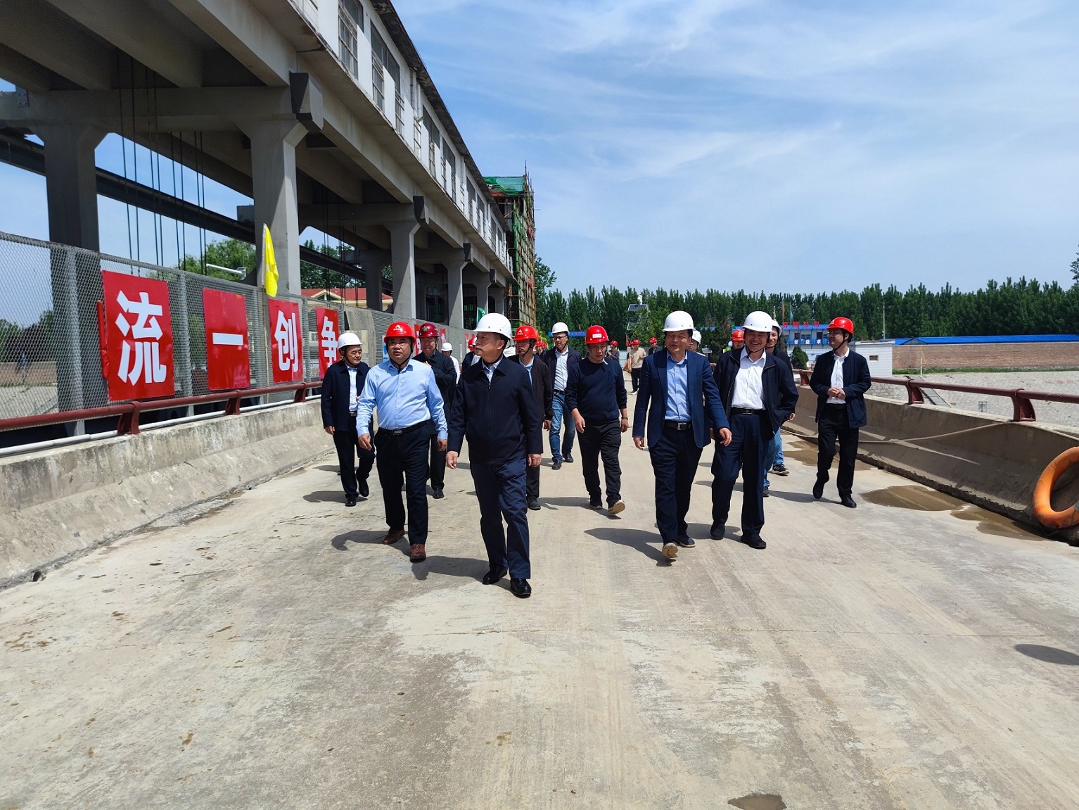 王祖利一行通過查看現(xiàn)場、聽取匯報、座談交流等方式,全面了解小清河水牛韓節(jié)制閘除險加固工程實施進展情況,對項目建設(shè)工作完成情況給予肯定。并對下一步工作提出三點要求:一是提高站位,壓實責(zé)任,嚴(yán)格落實各項制度;二是完善監(jiān)管體系,持續(xù)抓好工程質(zhì)量與安全;三是齊心協(xié)力,全力沖刺,有力有序、高質(zhì)高效推進項目建設(shè)。