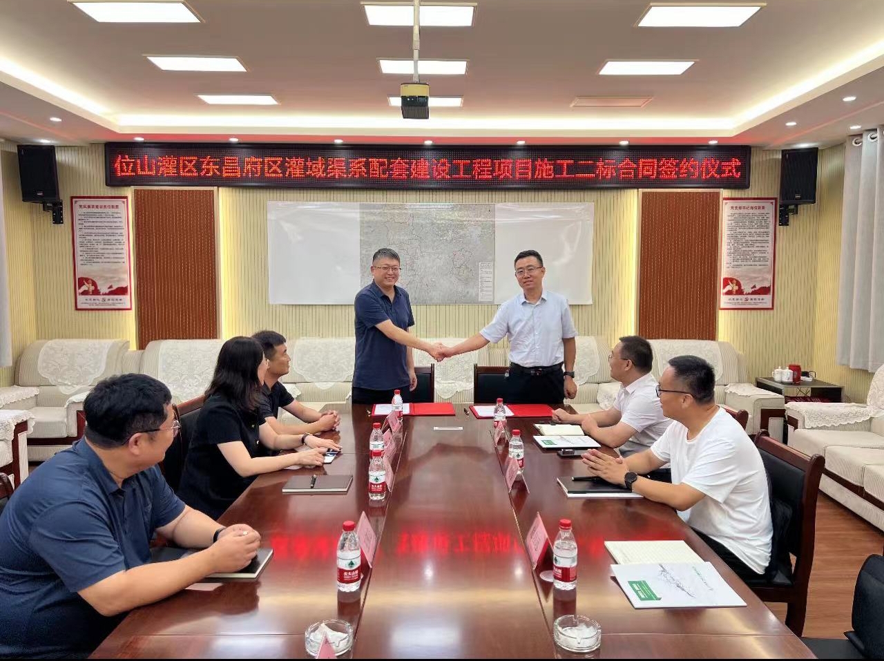 7月15日,二局有限公司新中標(biāo)的位山灌區(qū)東昌府區(qū)灌域渠系配套建設(shè)工程項目簽約儀式在該項目駐地舉行,東昌府區(qū)水利局代表,發(fā)包人代表,承建方二局有限公司代表等參加簽約儀式。