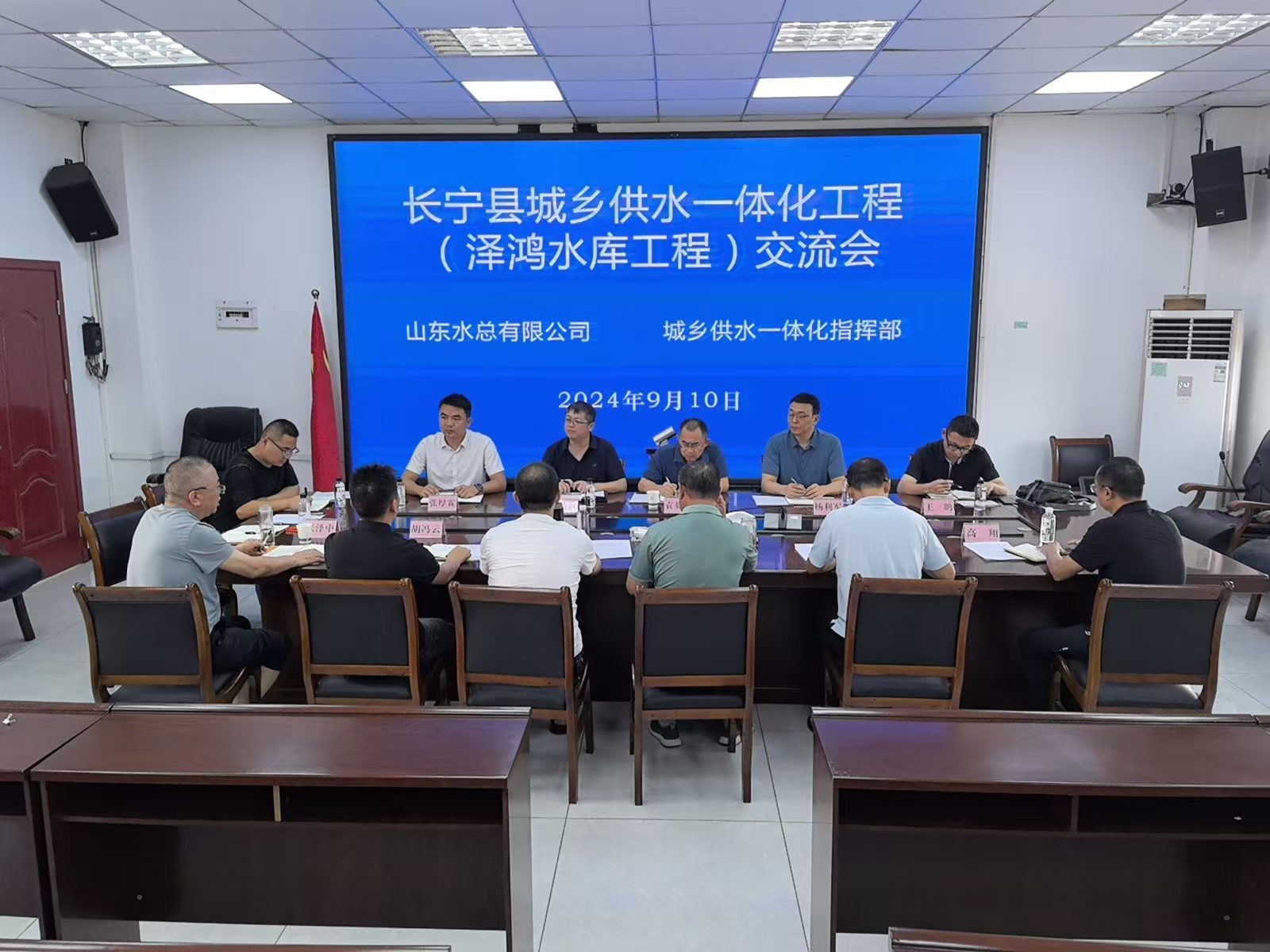 9月10日,公司黨委委員、副總經(jīng)理袁英杰,總會(huì)計(jì)師楊利軍等一行到四川省長寧縣水利局座談交流。長寧縣人大常委會(huì)副主任、城鄉(xiāng)供水一體化工程指揮部副指揮長何貴生,長寧縣水利局黨組書記、局長王銘出席座談會(huì)。