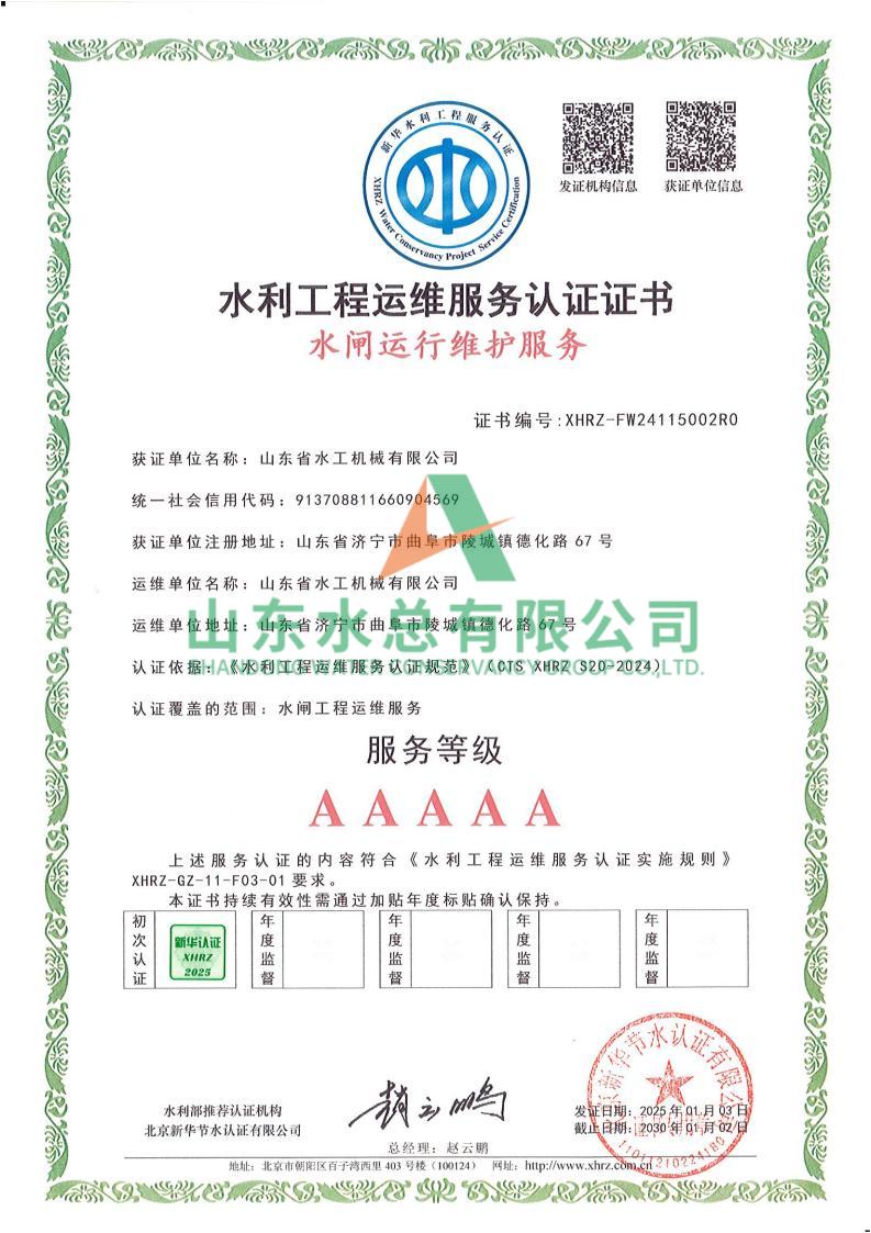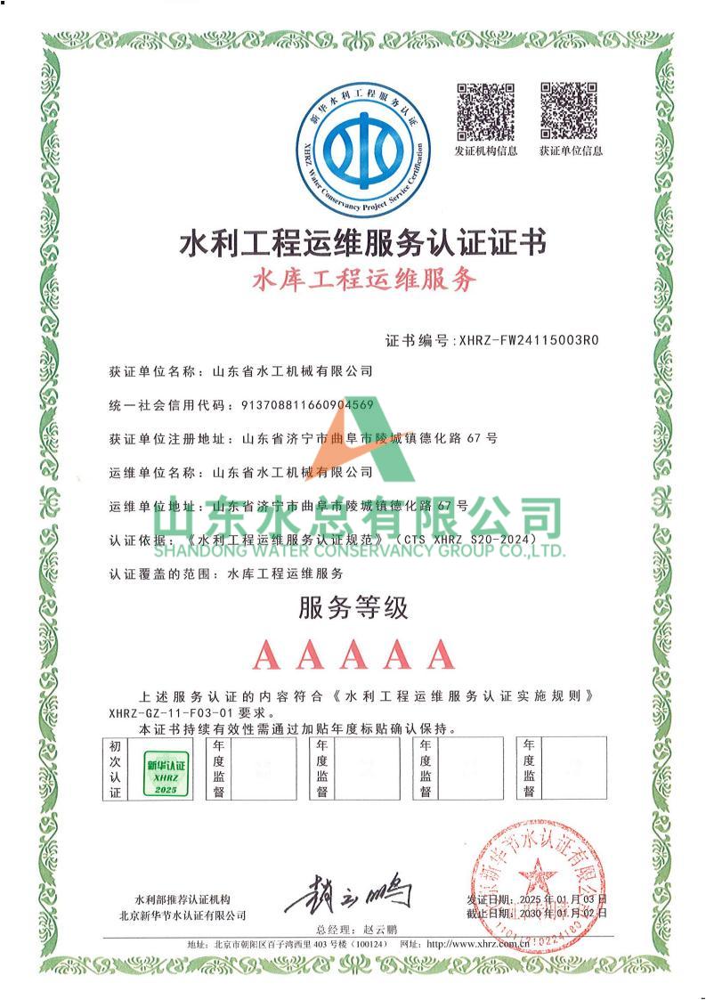 一直以來,水工機(jī)械公司高度重視水利工程運維服務(wù)的質(zhì)量與專業(yè)性,在人員配備、技術(shù)應(yīng)用、管理體系等多方面精心打磨。在認(rèn)證過程中,歷經(jīng)嚴(yán)格審核,公司憑借扎實的運維實力、規(guī)范的服務(wù)流程以及對水利工程運維高規(guī)格的執(zhí)行標(biāo)準(zhǔn),贏得了認(rèn)可。