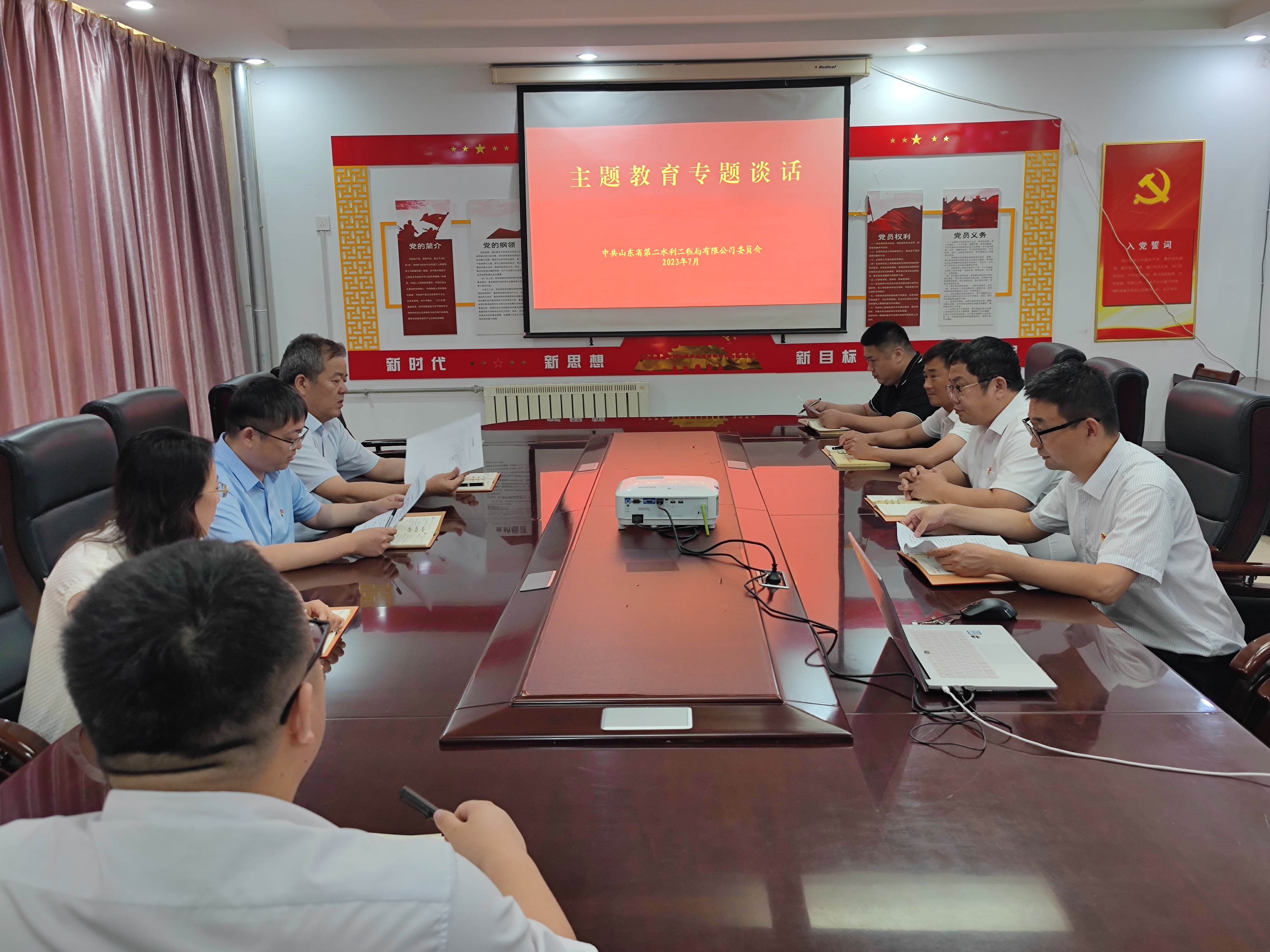 7月7日,二局有限公司黨委書記、總經(jīng)理王傳波與領(lǐng)導(dǎo)班子成員、各黨支部書記開展主題教育專題談話。