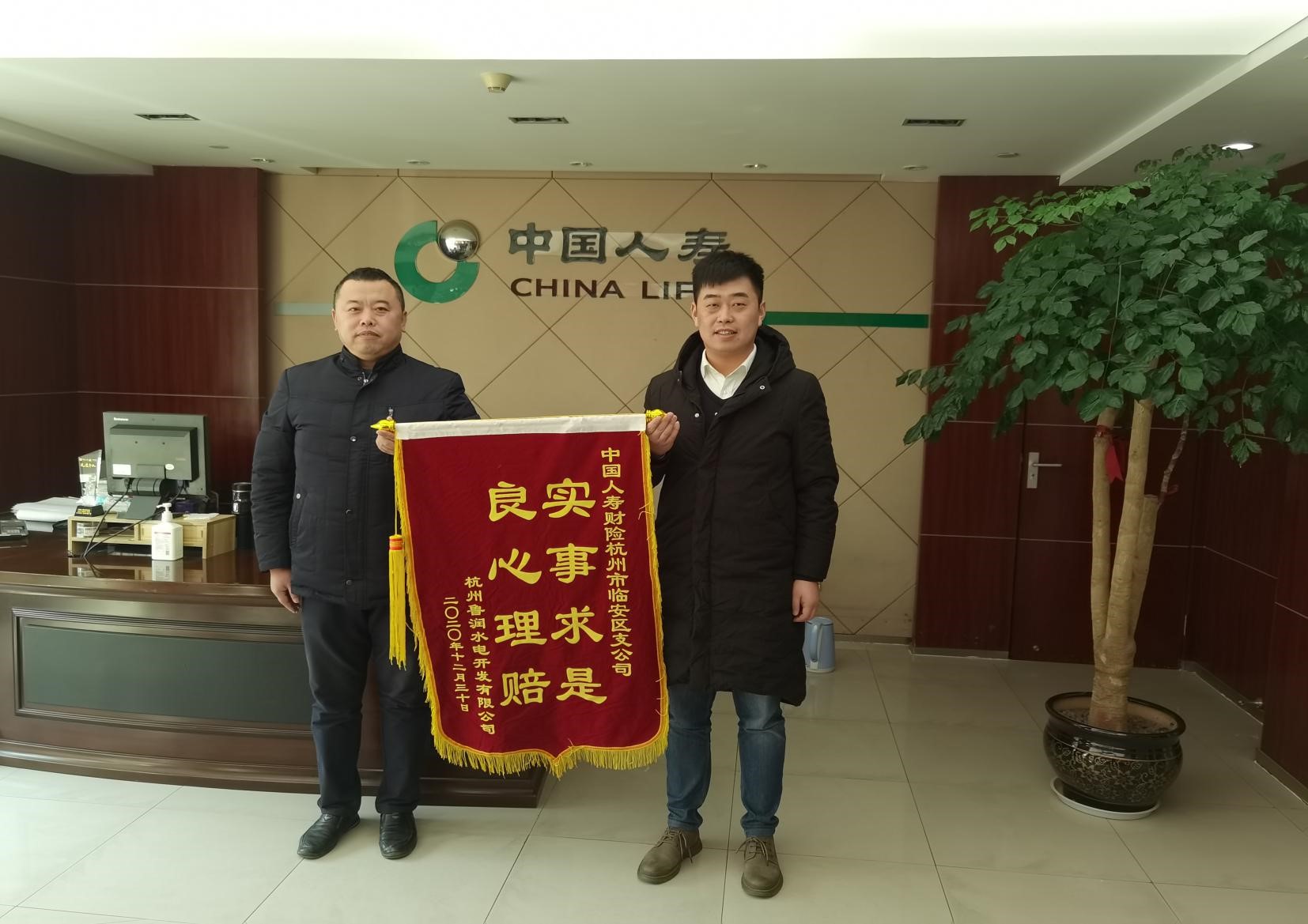 12月30日,中國人壽保險公司已將最終賠付款105萬元匯入杭州魯潤水電開發(fā)公司賬戶。雙溪口水庫工程順利完成此次工程一切險理賠。風雨無情,保險有愛。雙溪口水庫工程建設期4年,為了更好讓保險為工程保駕護航,更緊密的跟保險公司建立友好關系。杭州魯潤公司將一面印有“實事求是 良心理賠”的錦旗送到中國人壽臨安支公司,并對中國人壽理賠工作人員盡職盡責、熱情周到的服務提出高度贊揚和誠摯感謝。