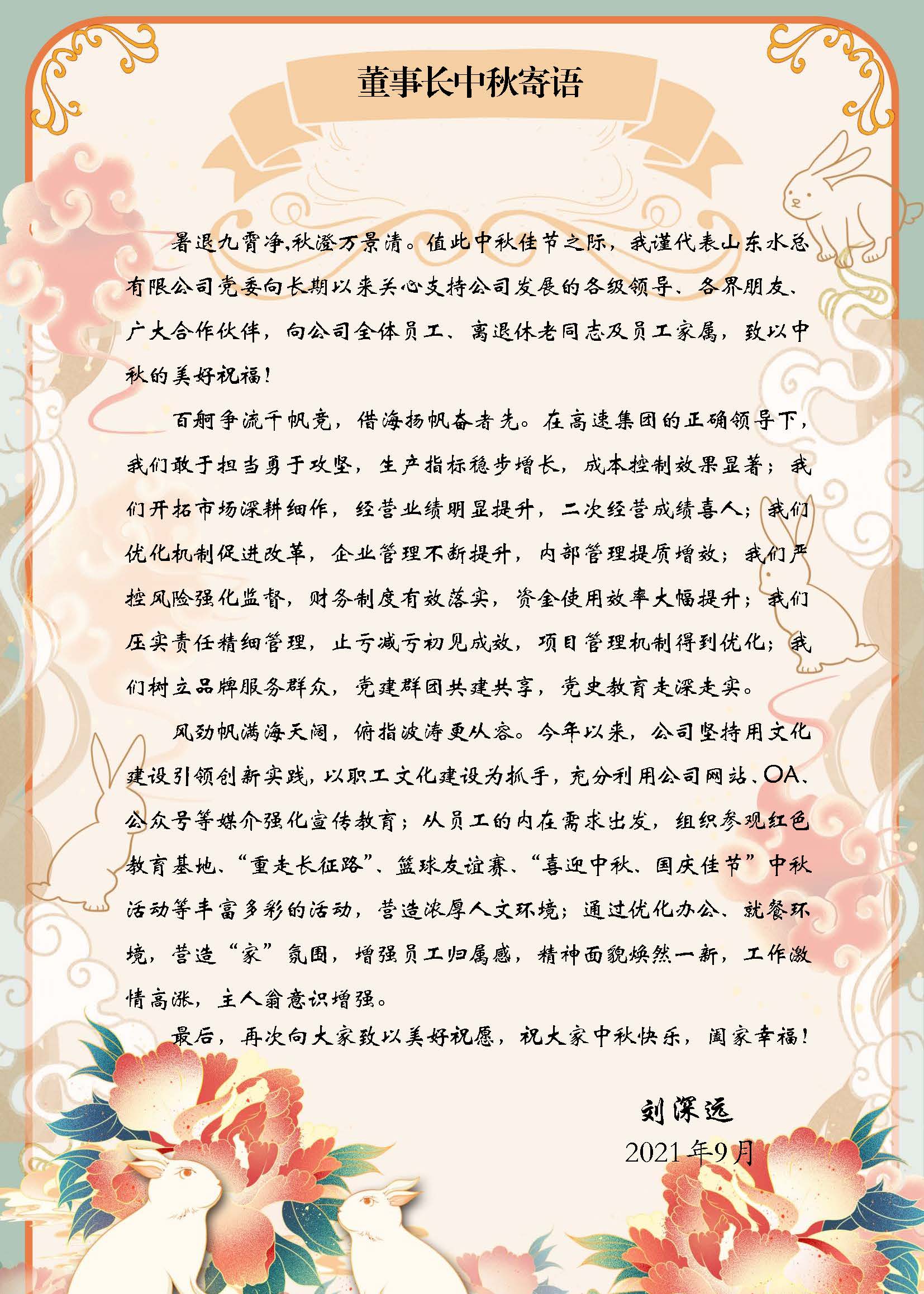 董事長中秋寄語