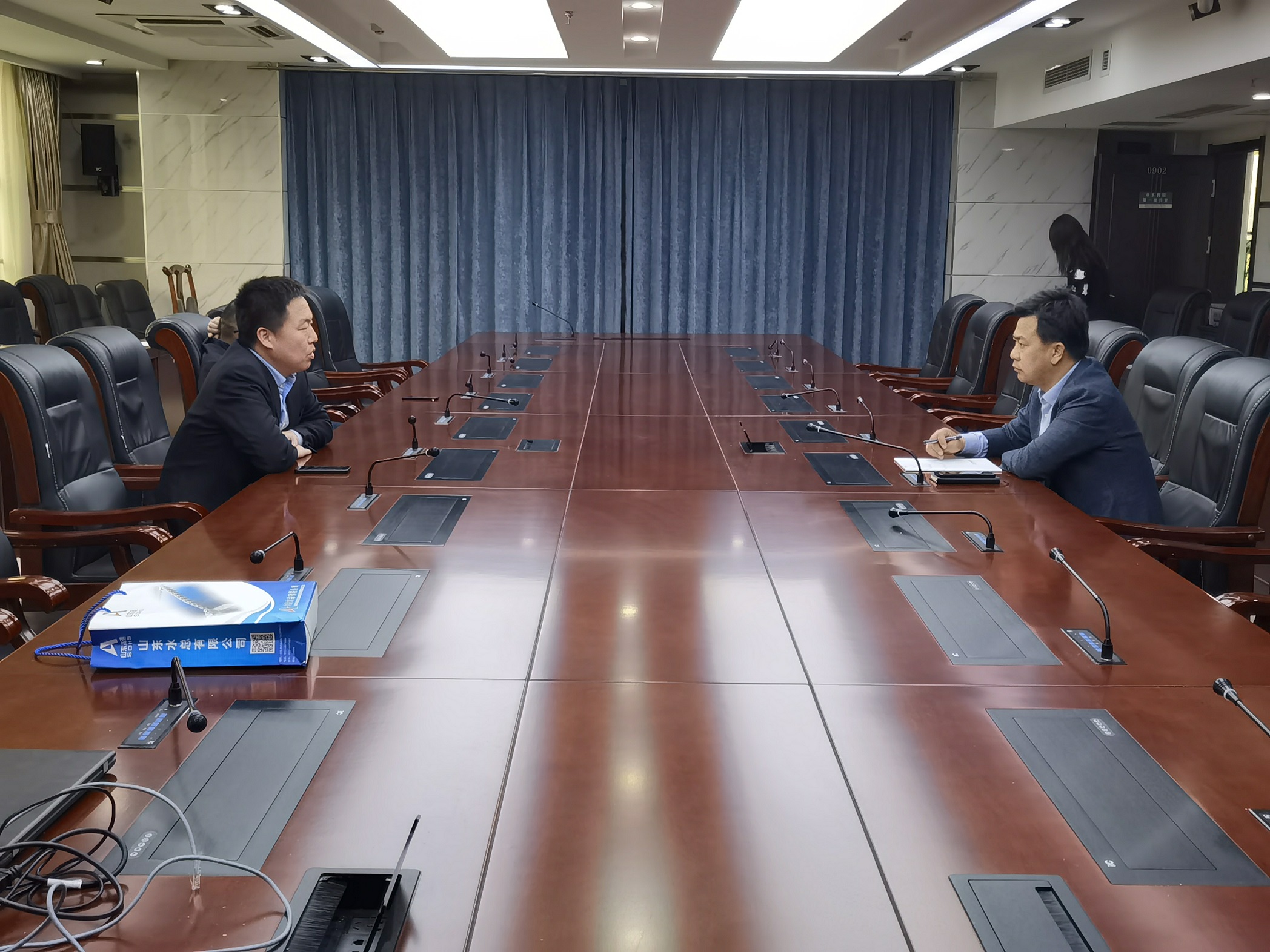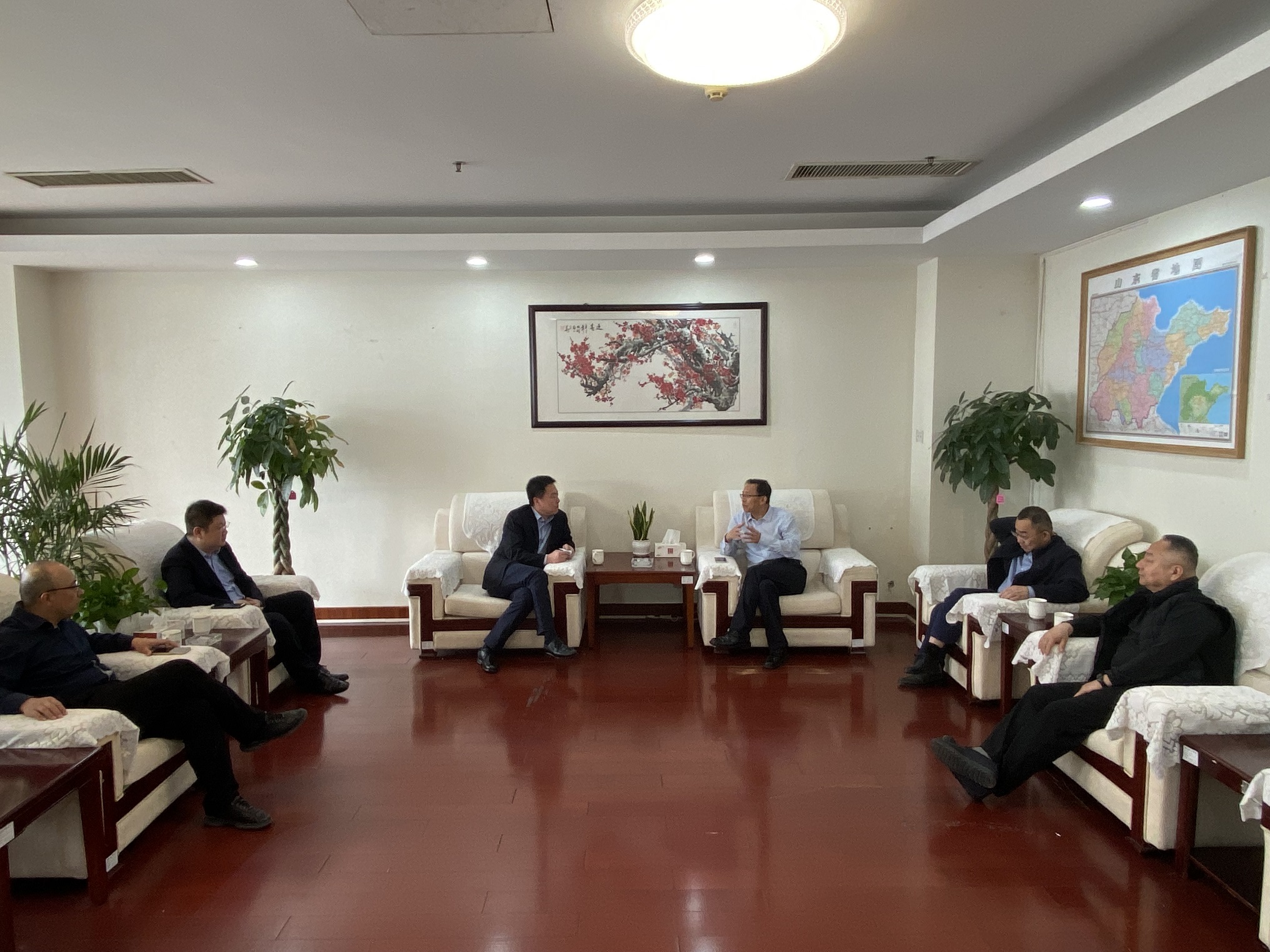隨后,靳文碩等一行到青島區(qū)域協(xié)同發(fā)展辦公室同李丕明主任進(jìn)行座談交流。李丕明對(duì)靳文碩一行表示熱烈歡迎,并對(duì)水總在青島區(qū)域的投資建設(shè)給予大力支持,希望雙方在此基礎(chǔ)之上再進(jìn)行深入探討,力爭實(shí)現(xiàn)更深層次的合作發(fā)展。