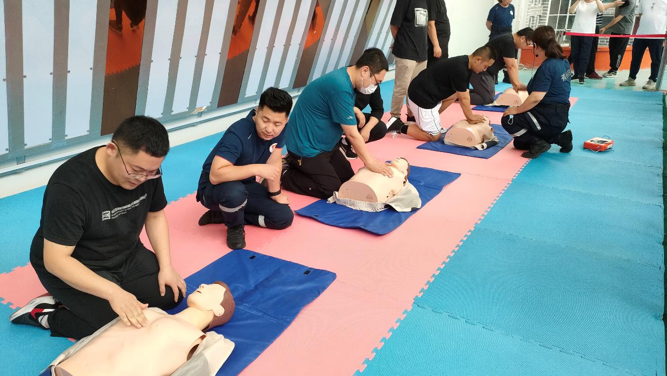 本次演練第一項為CPR(心肺復(fù)蘇技術(shù))和AED(體外自動除顫技術(shù))施救培訓(xùn),讓全體人員了解和掌握急救的基本知識和應(yīng)對方法。第二項為醫(yī)療急救演練,場景模擬施工人員受傷,開展止血包扎及搶救傷員,提高應(yīng)急快速反應(yīng)能力和果斷處置能力。第三項為消防安全演練,涉及煙霧模擬逃生和消防水帶滅火使用,做到學(xué)用相結(jié)合;增加低樓層逃生及高空緩降演練,利用繩索及布條等工具進(jìn)行逃生演練。