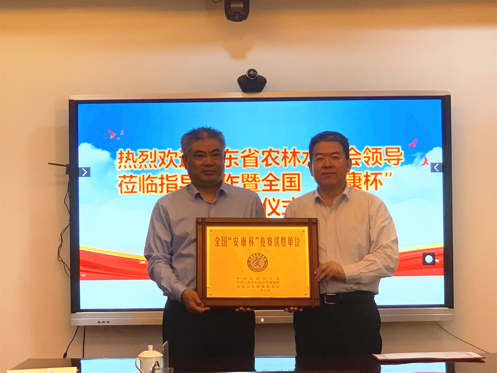 5月12日,公司舉行了全國、山東省“安康杯”競賽優(yōu)勝單位授牌儀式。省農(nóng)林水工會主席張志剛、主任科員吳開明,公司黨委書記、董事長劉深遠(yuǎn),黨委副書記、董事、總經(jīng)理靳文碩,黨委委員、副總經(jīng)理付海華,黨委組織部、安全管理部相關(guān)人員參加儀式活動。