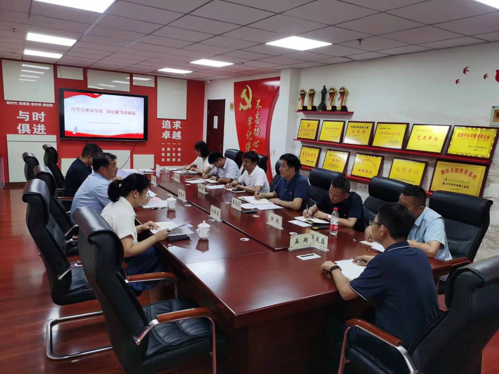6月19日,路橋股份公司總經(jīng)理助理、安全總監(jiān)荊玉才一行到訪,代表山東高速路橋集團股份有限公司機關(guān)第五黨支部與山東水總第三分公司黨支部進行聯(lián)學共建,開展“攻堅克難謀發(fā)展 凝心聚力譜新篇”主題黨日活動,公司科技創(chuàng)新發(fā)展部相關(guān)人員列席參加。