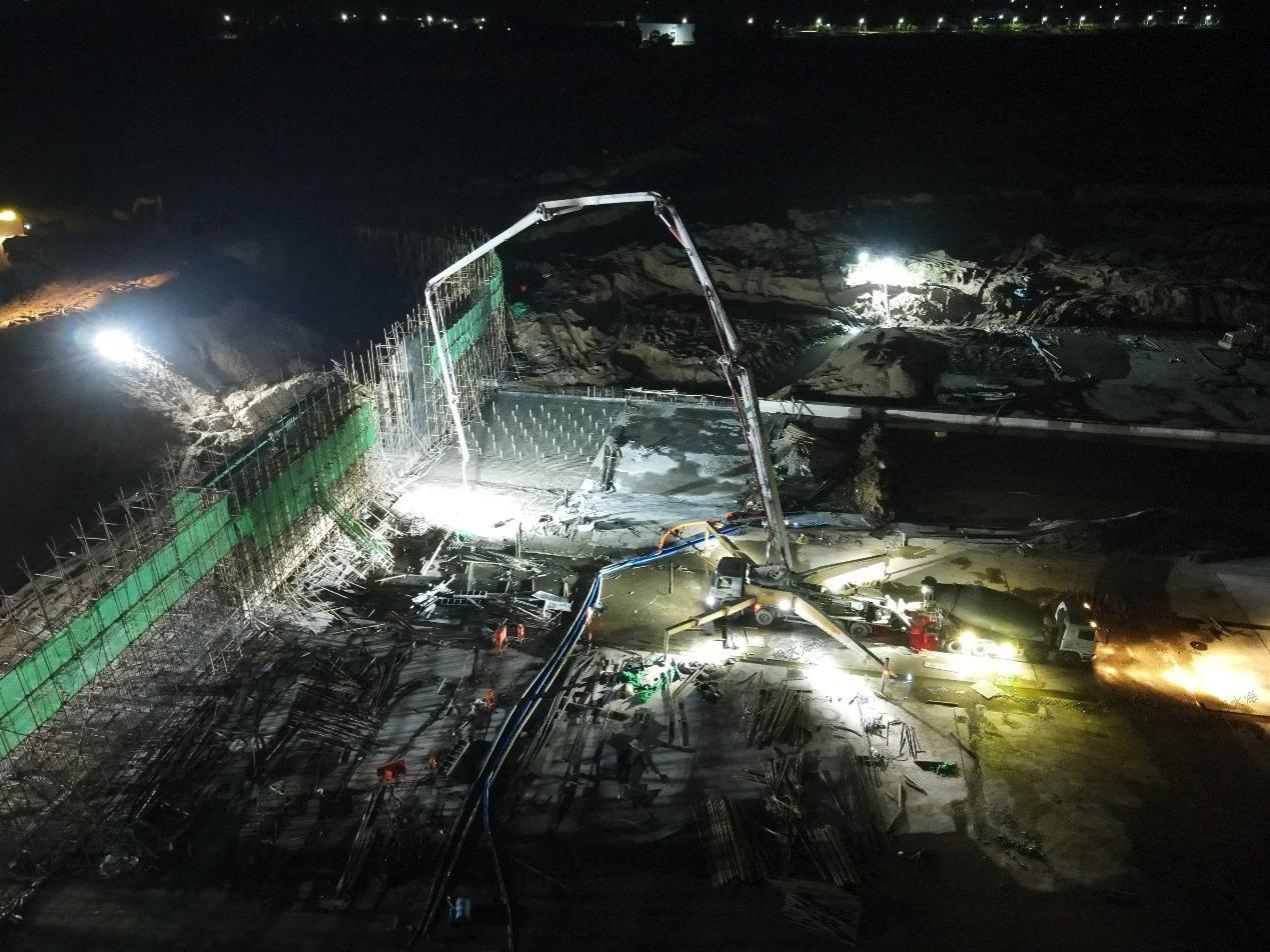 進(jìn)入汛期以來(lái),第三分公司承建的沂南岸堤水源項(xiàng)目現(xiàn)場(chǎng)一片繁忙施工景象。白天搶抓晴好天氣,全力推進(jìn)工程建設(shè)進(jìn)度;夜間燈火通明加強(qiáng)巡查,確保施工質(zhì)量不受影響。目前,項(xiàng)目水下部位工程已全部完成,左岸消力池的澆筑也接近尾聲。