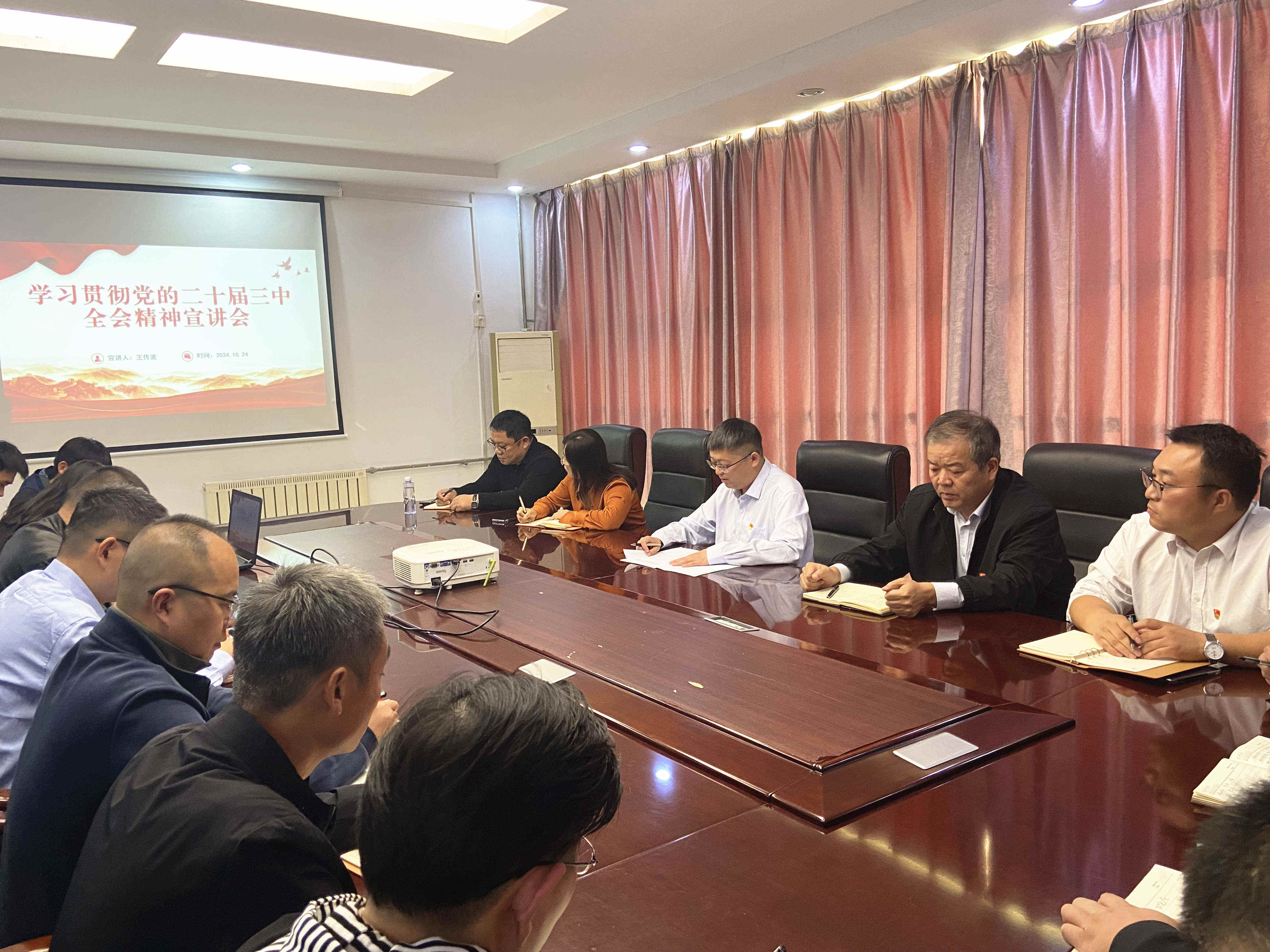 活動伊始,二局有限公司黨委書記、總經理王傳波在曲阜駐地三樓會議室以“深入學習貫徹黨的二十屆三中全會精神 以釘釘子精神抓好改革任務落地落實”為題,向二局有限公司全體黨員進行了黨的二十屆三中全會精神專題宣講。他圍繞水總公司黨委關于學習貫徹全會精神的部署要求,結合公司實際,重點闡述了黨的二十屆三中全會的精神要義和實踐要求,詳細講解了關于進一步全面深化改革的重大意義、重大成就、以及貫徹落實全會精神的具體措施,讓大家對黨的二十屆三中全會精神及全面深化改革有了更加全面、深刻的理解,并要求公司全體黨員深學細悟、全面把握全會精神內涵,自覺用全會精神武裝頭腦、指導實踐,持續(xù)以改革之力助推公司高質量發(fā)展再上新臺階。